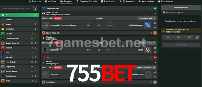 O 755bet oferece uma grande seleção de opções de apostas em e-sports com probabilidades competitivas